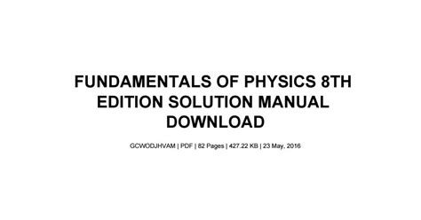 Read FUNDAMENTAL OF PHYSICS 8TH EDITION SOLUTION MANUAL PDF Doc